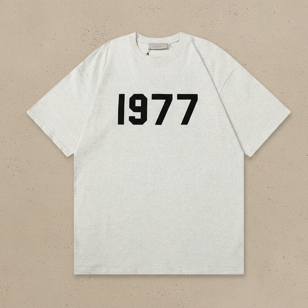 Essentials 1977 Graphic Tee, premium cotton, casual oversized fit, soft breathable fabric, perfect streetwear style for men and women.