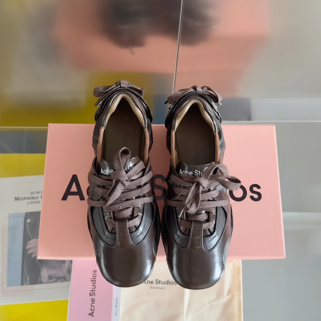 Acne Studios brown leather sneakers with stylish lace-up design, premium craftsmanship, and modern minimalist aesthetic for versatile everyday wear.