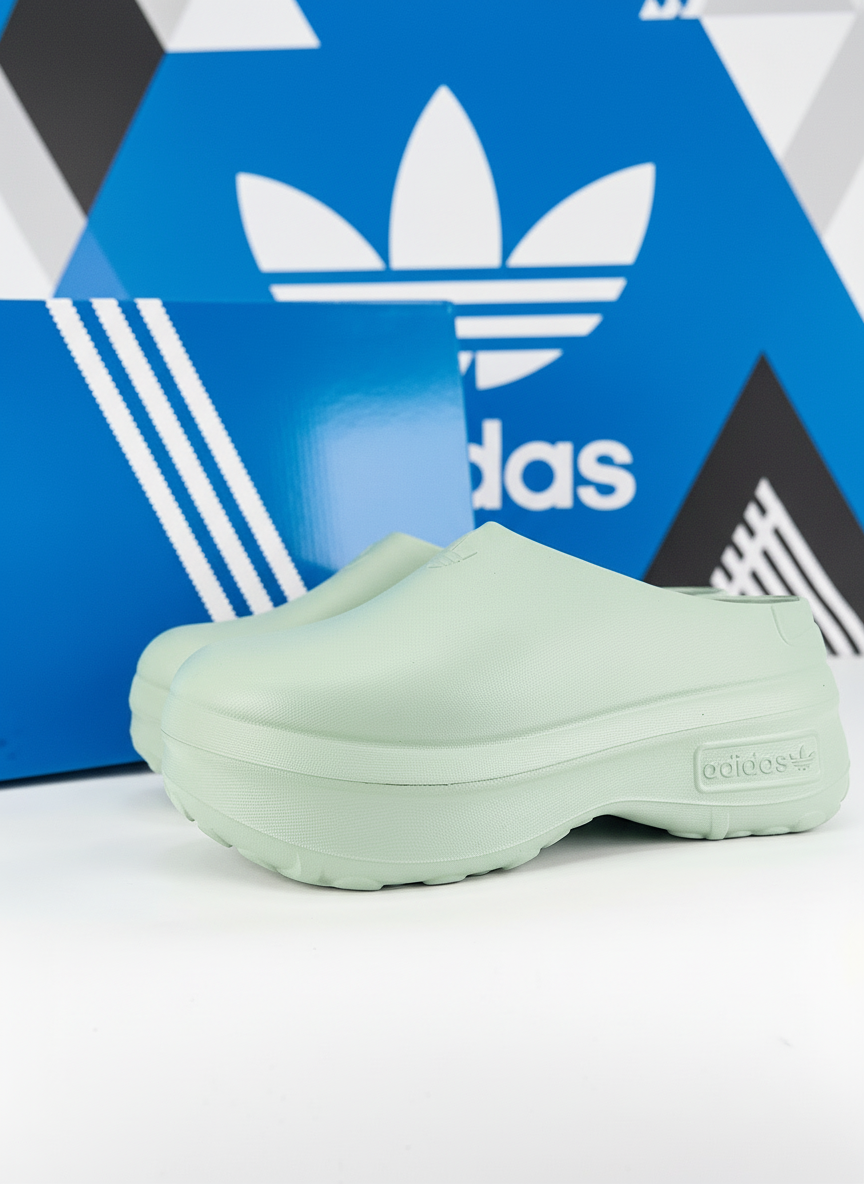 Adidas Mint Green Platform Clogs, lightweight slip-on shoes with thick sole for ultimate comfort, stylish casual footwear perfect for daily wear and outdoor activities.