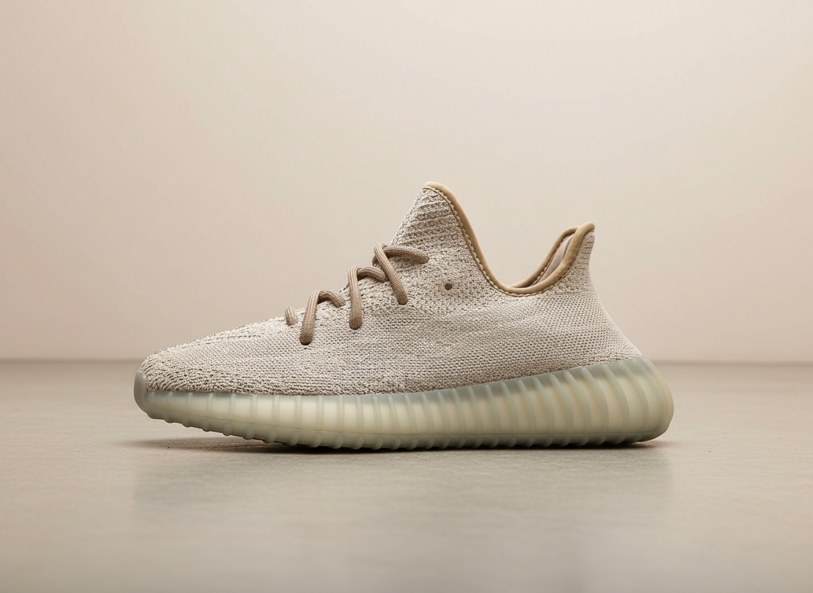 Adidas Yeezy Boost 350 V2 sneakers, breathable knit upper, cushioned sole, stylish beige color, perfect for casual wear and street fashion.
