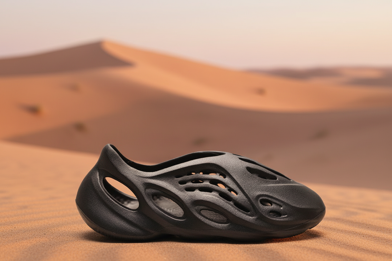 Adidas Foam Runner Black, lightweight breathable slip-on casual shoes with futuristic design, perfect for summer comfort and street style fashion.