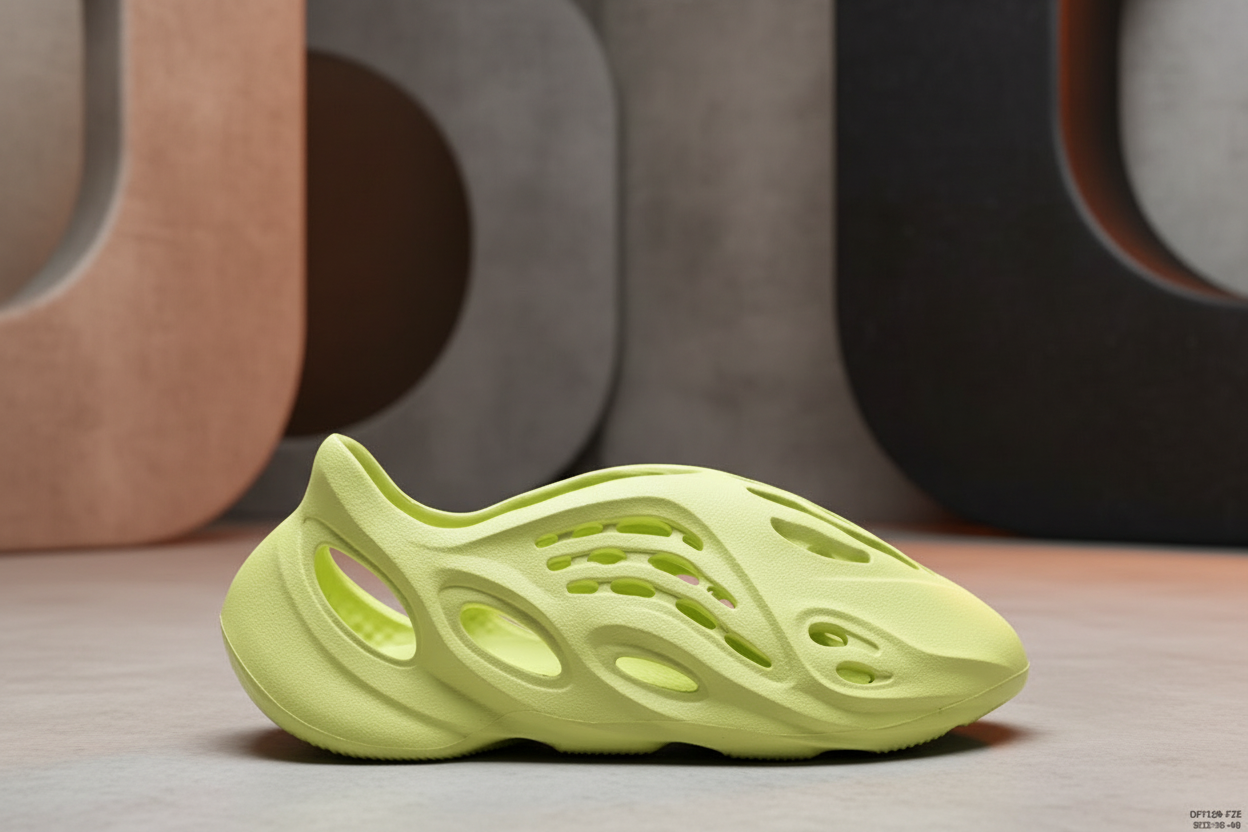 Adidas Foam Runner Yellow, lightweight breathable slip-on sneakers with futuristic design, perfect for casual wear, beach, and outdoor activities, sizes 36-46.