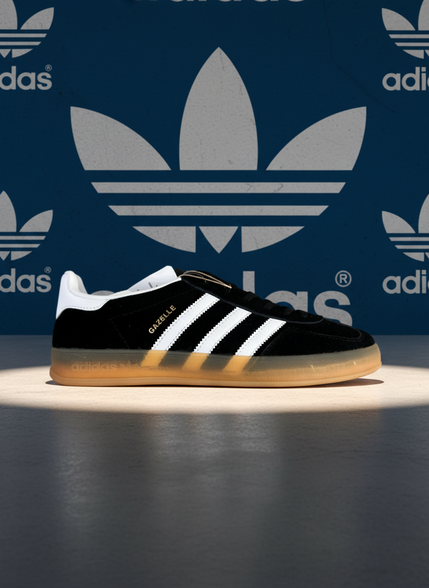Adidas Gazelle Black White Gum Sole Sneakers