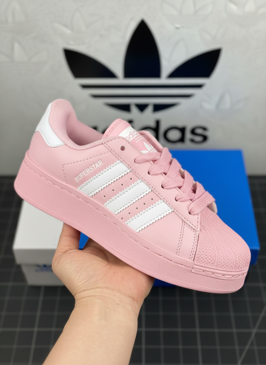 Adidas Superstar Pink Sneakers with classic white stripes, durable rubber shell toe, and comfortable fit, perfect for casual wear and street style lovers.