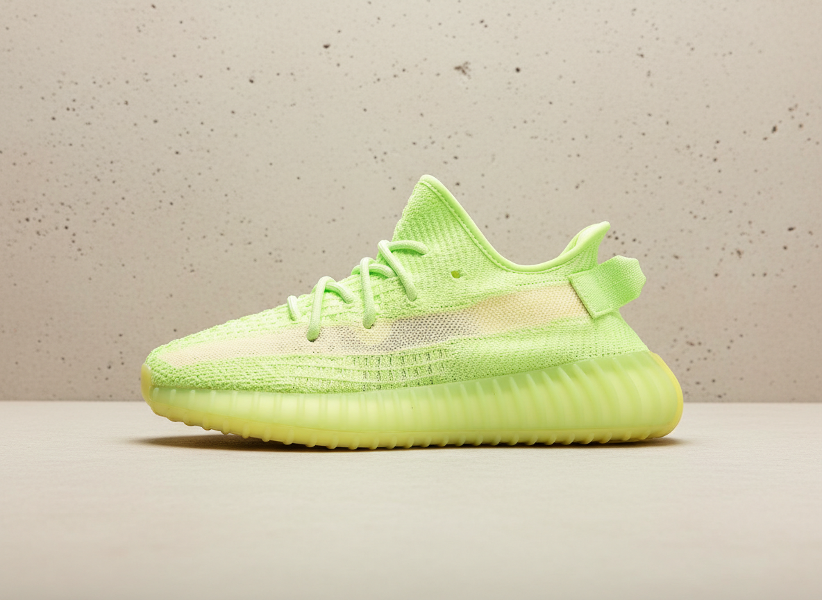 Adidas Yeezy Boost 350 V2 Neon Green Sneakers, breathable Primeknit upper, cushioned sole, stylish and comfortable sports shoes for men and women.