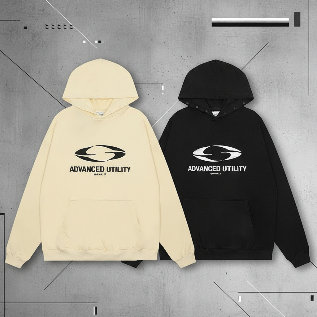 GRAFALZ Advanced Utility hoodies for men and women, casual oversized pullover with kangaroo pocket, soft cotton, perfect for streetwear and everyday style.