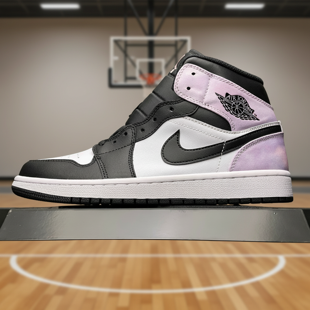 Air Jordan High Top Sneakers in black, white, and pastel purple, offering premium comfort, iconic style, and perfect for casual wear or basketball performance.