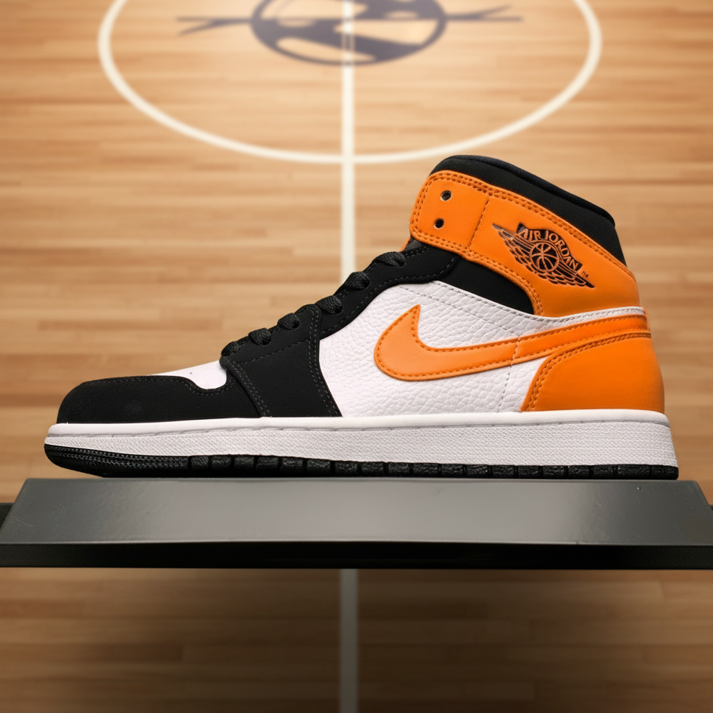 Air Jordan 1 Mid Black Orange White Sneakers