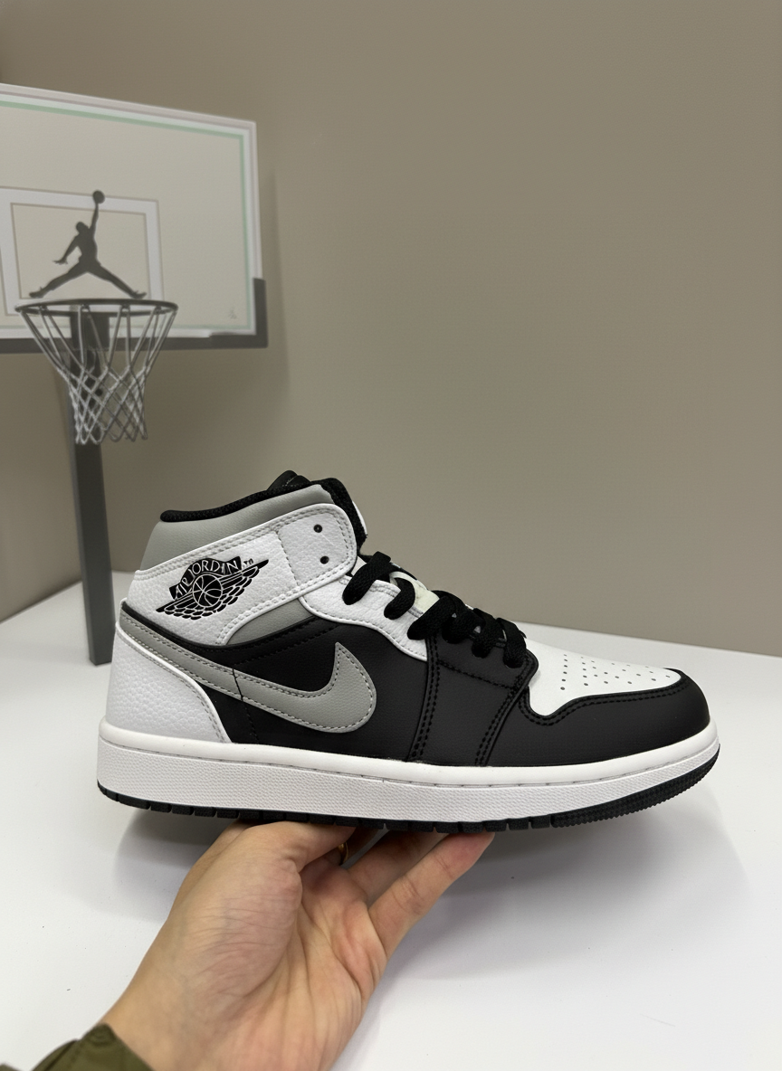 Air Jordan Mid Black White Sneakers, premium leather upper, cushioned sole for comfort, iconic style for basketball and streetwear fashion.