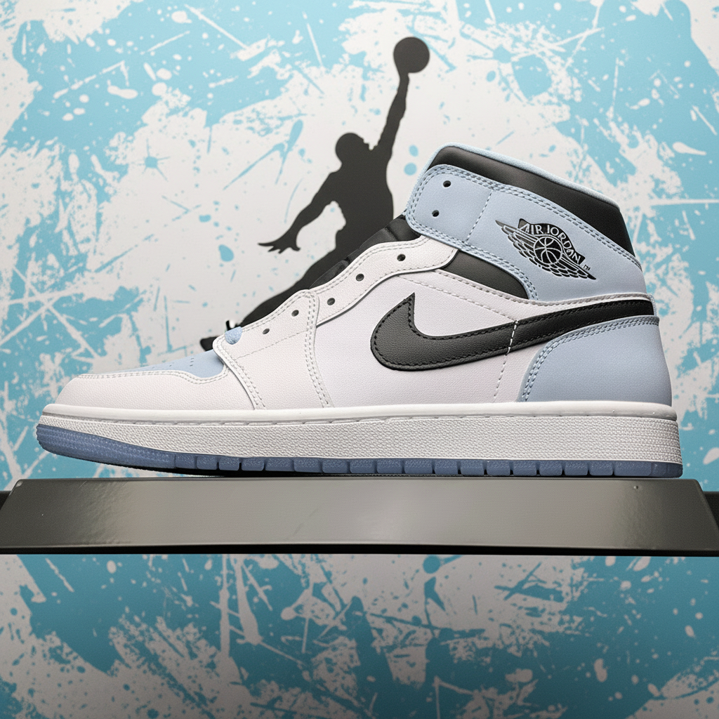 Air Jordan 1 Mid White Blue Basketball Sneakers