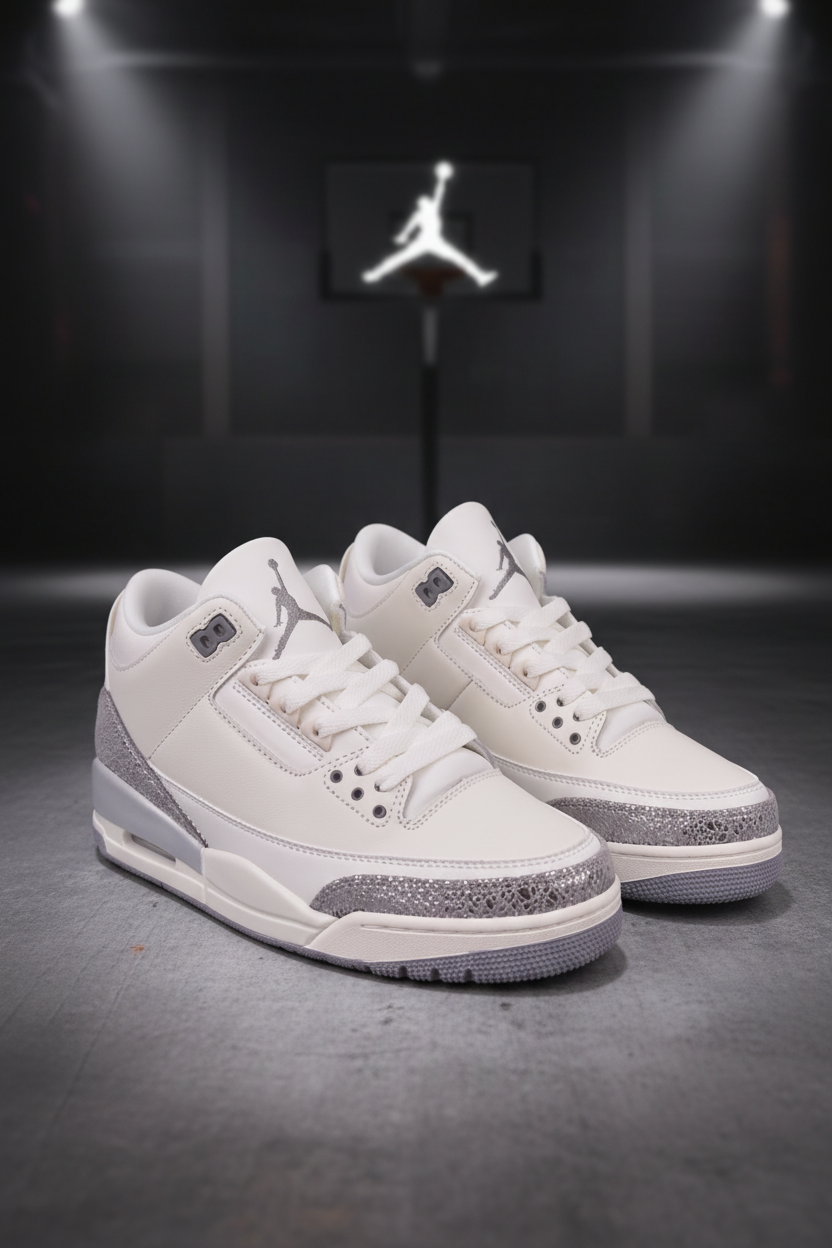 Air Jordan 3 Retro White Silver Basketball Shoes