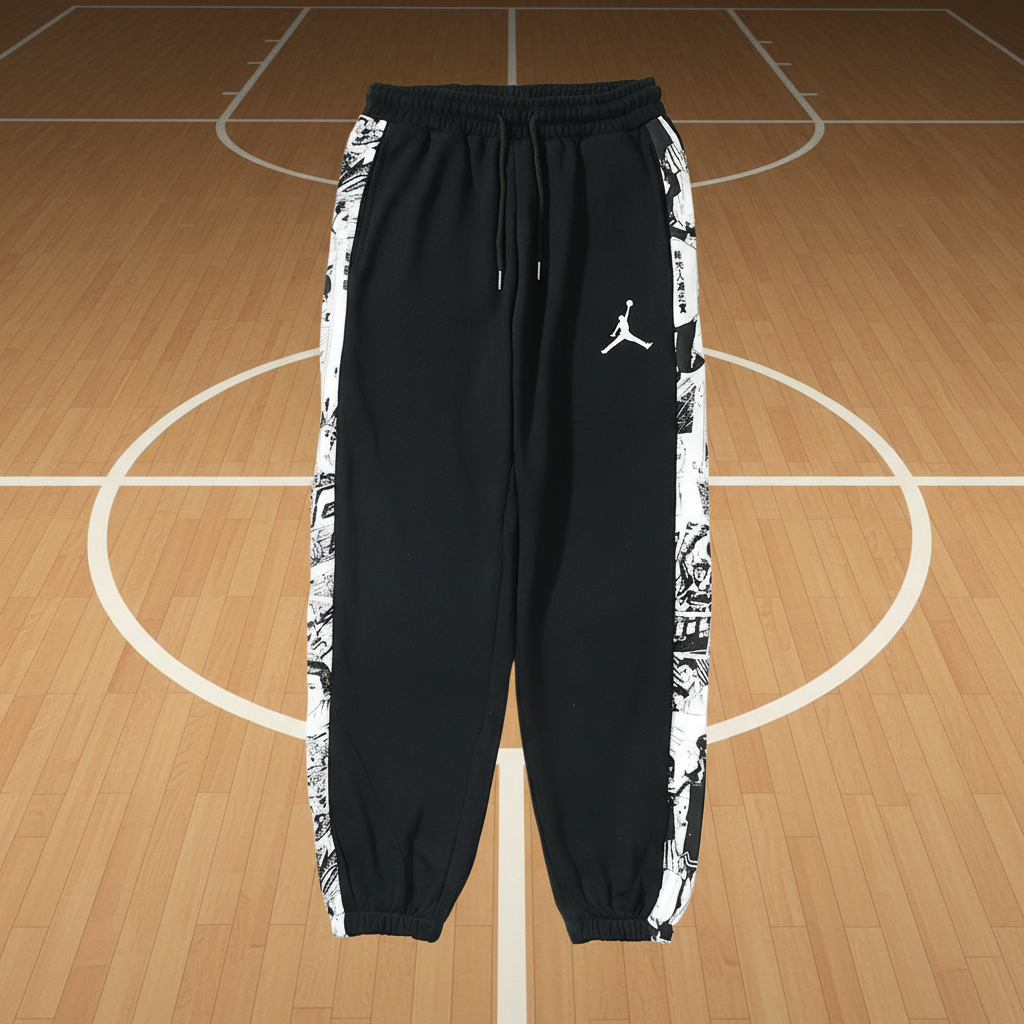 Air Jordan Black Graphic Side Panel Sweatpants, casual athletic joggers with elastic waist and ankle cuffs, premium comfort for sports and streetwear style.
