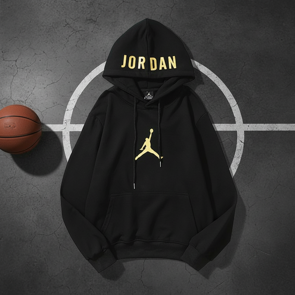 Air Jordan Black Hoodie with Iconic Jumpman Logo, Comfortable Pullover Sweatshirt for Sports and Streetwear Style