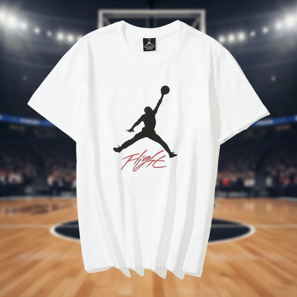 Air Jordan Flight Graphic Tee – White cotton T-shirt with iconic Jumpman logo, classic streetwear style, perfect for sports, casual wear, and sneaker lovers.