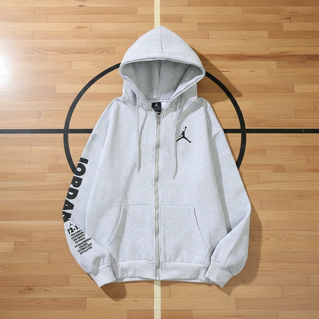 Air Jordan Men’s Gray Zip-Up Hoodie, Stylish Sportswear with Iconic Logo, Comfortable Cotton Blend, Perfect for Casual Wear and Street Fashion.