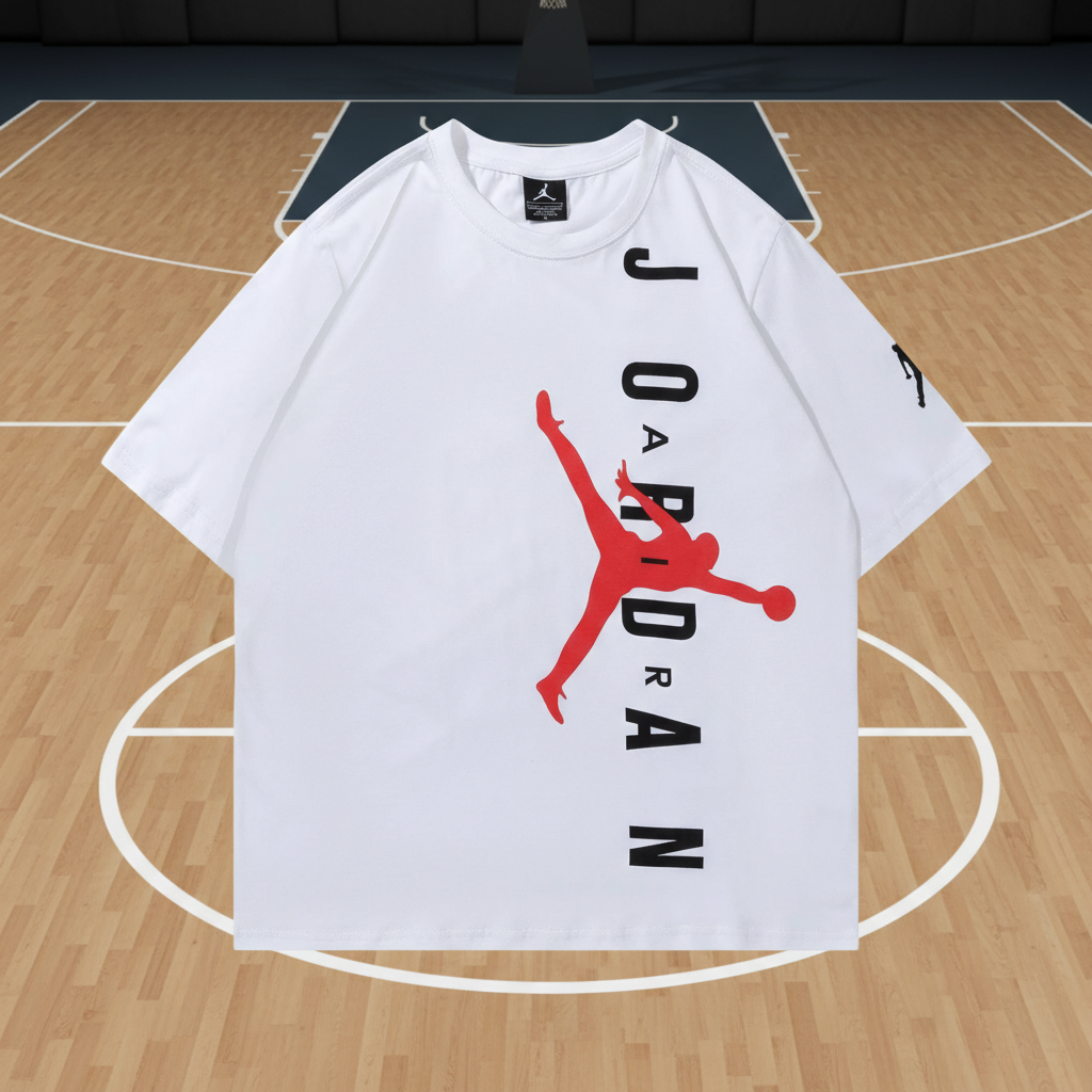 Air Jordan White T-Shirt with Iconic Red Jumpman Logo, Casual Short Sleeve Tee for Sports and Streetwear Style