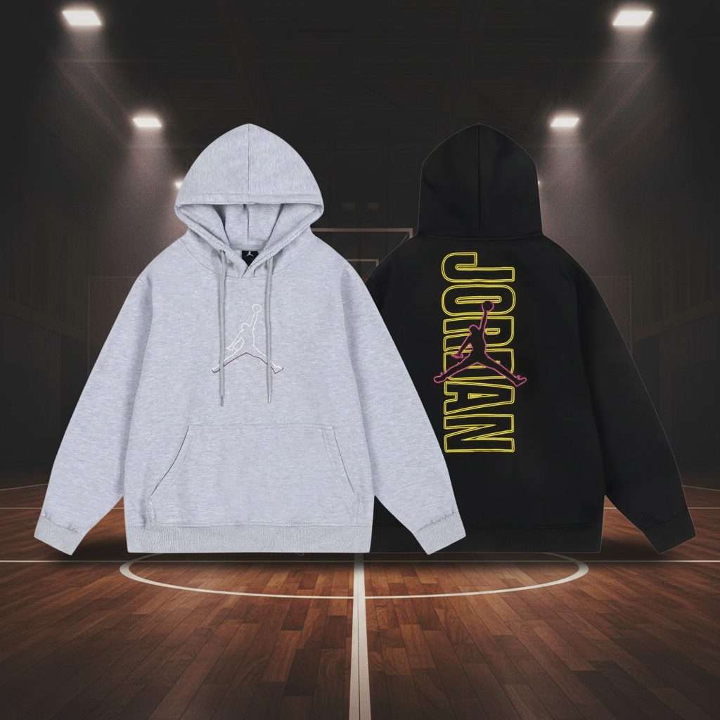 Air Jordan hoodies with iconic Jumpman logo, comfortable cotton blend, stylish sportswear perfect for casual wear or basketball fans.