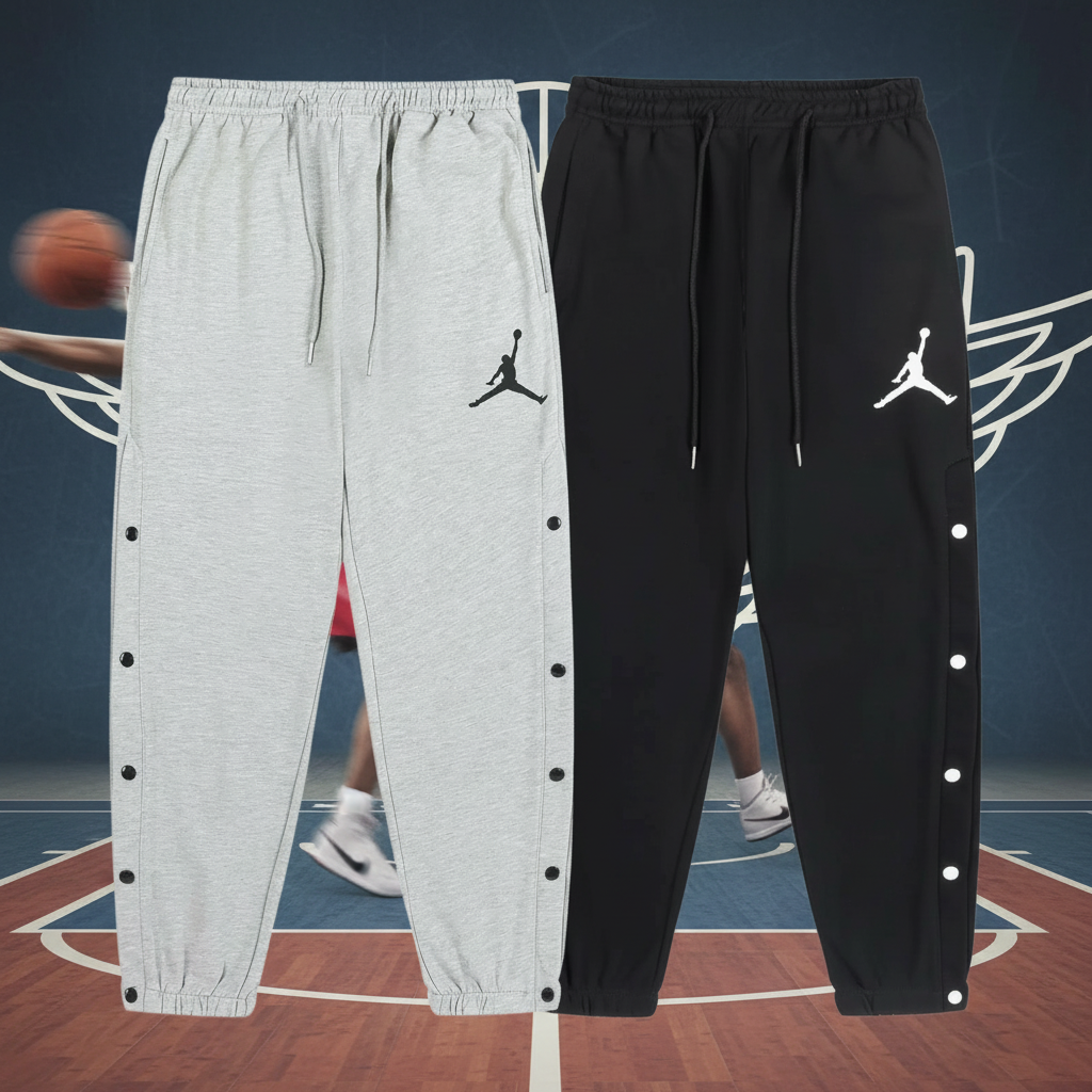 Air Jordan men’s casual jogger pants with side button design, elastic waist, and iconic Jumpman logo, perfect for sports, training, and everyday streetwear.