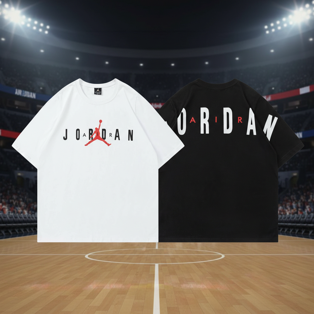 Air Jordan T-Shirts, stylish sportswear with iconic Jumpman logo, available in black and white, perfect for casual streetwear and basketball lovers.