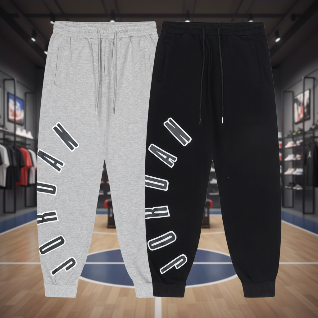 Air Jordan casual jogger pants, comfortable athletic sweatpants with bold logo print, perfect for sports, streetwear, and daily fashion in black or grey.