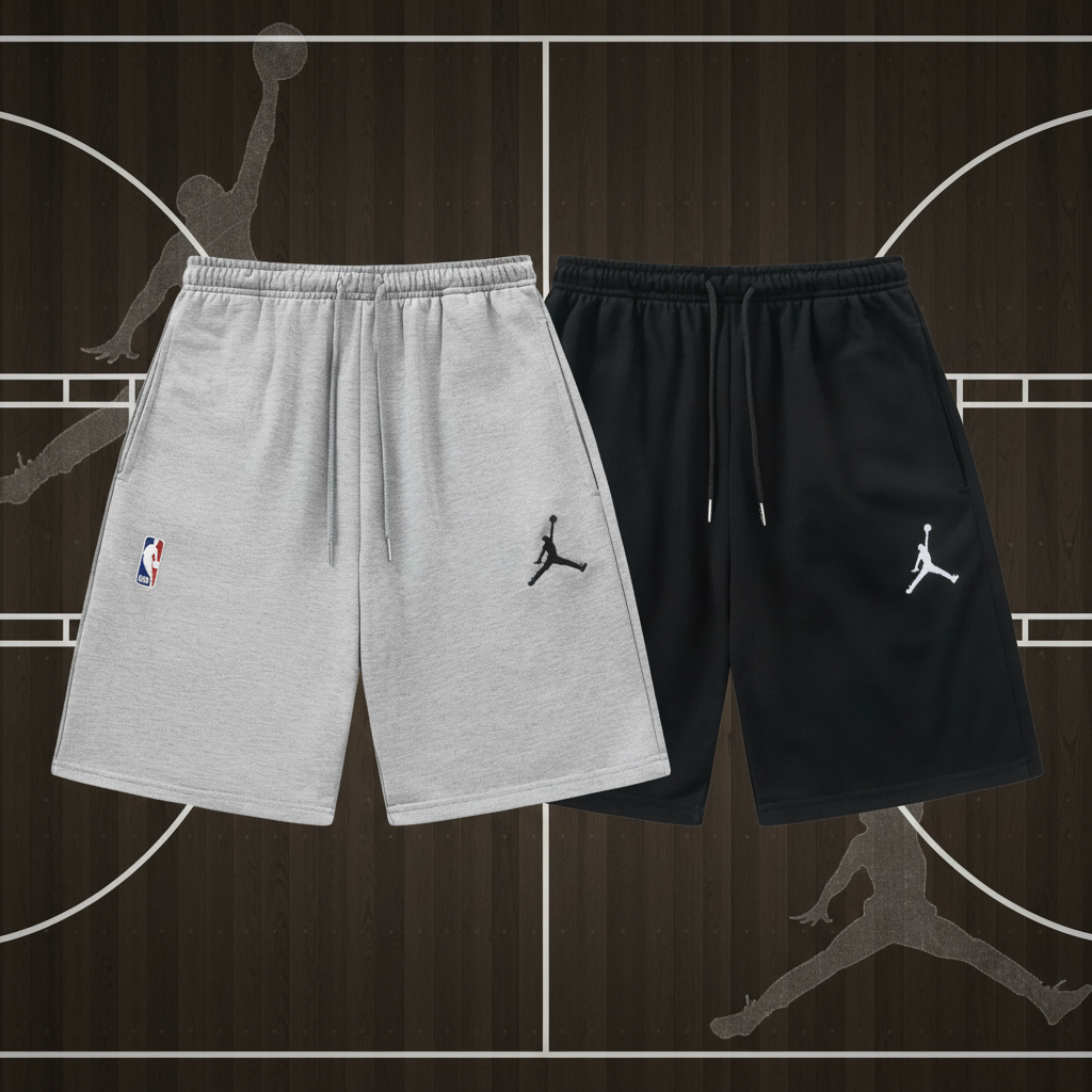 Air Jordan men’s sports shorts, breathable cotton fabric, NBA logo, casual loose fit, perfect for training, gym, and everyday wear.