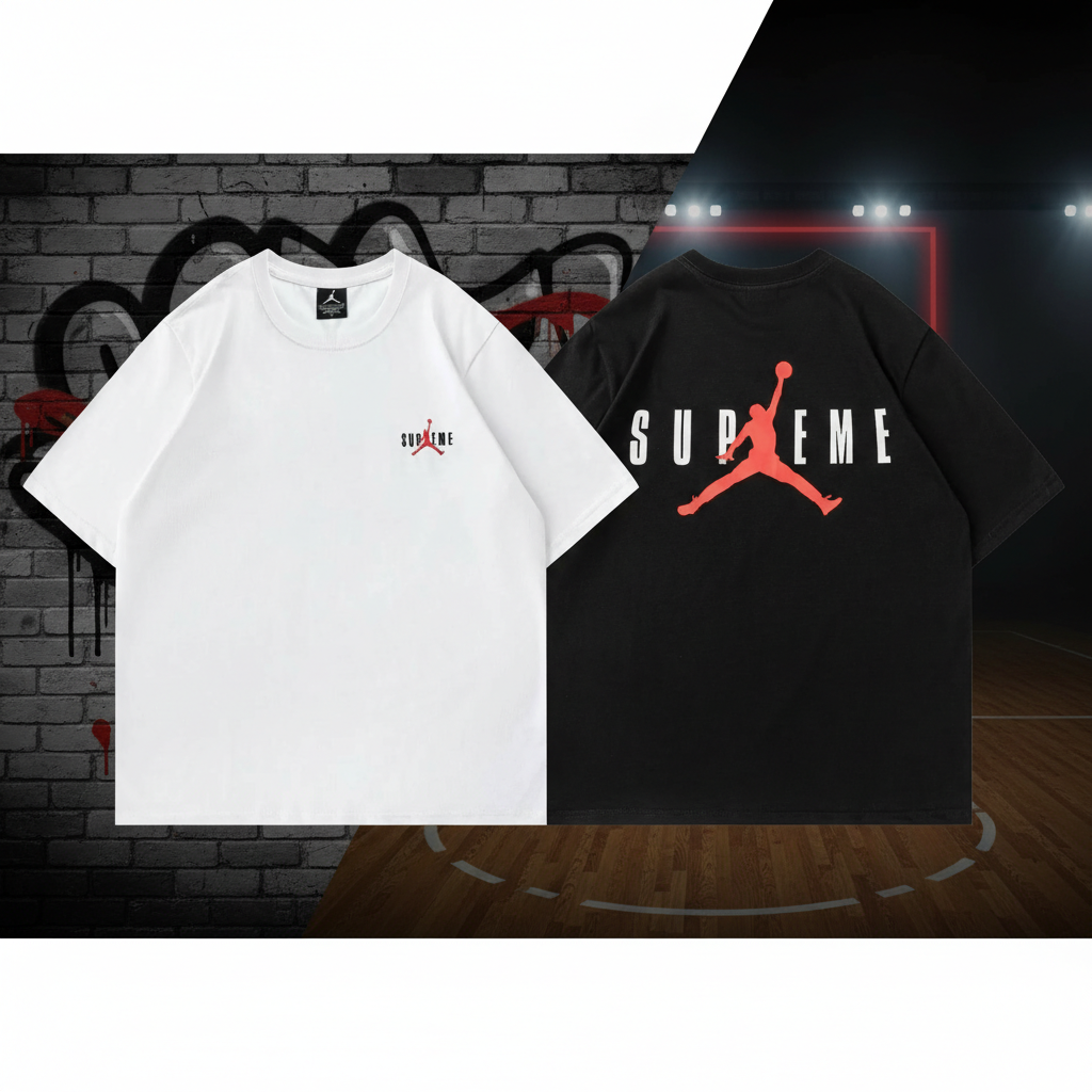 Air Jordan Supreme T-Shirt, classic streetwear style, soft cotton fabric, bold Jumpman logo, perfect for casual wear and sports enthusiasts.