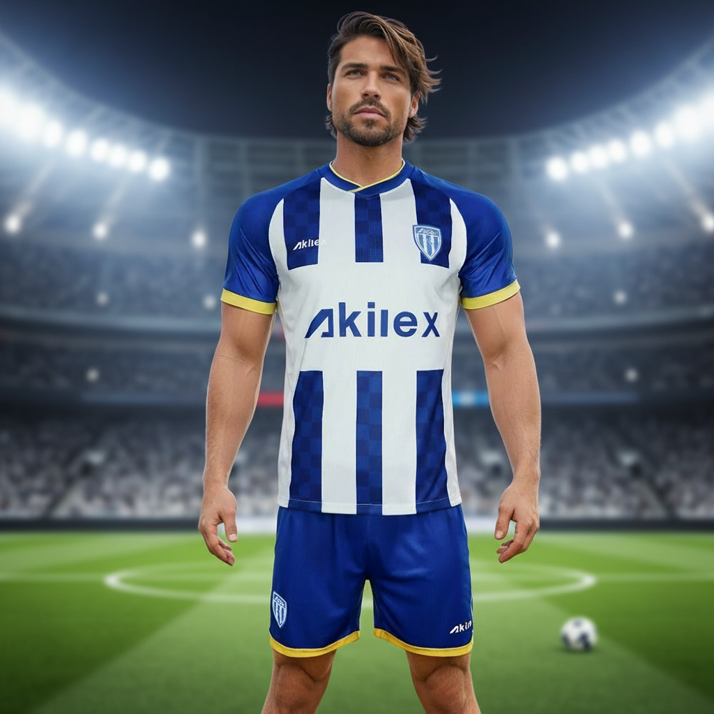 Akilex Men’s Soccer Jersey and Shorts Set, Breathable Quick-Dry Football Uniform for Training and Match, Blue and White Sportswear