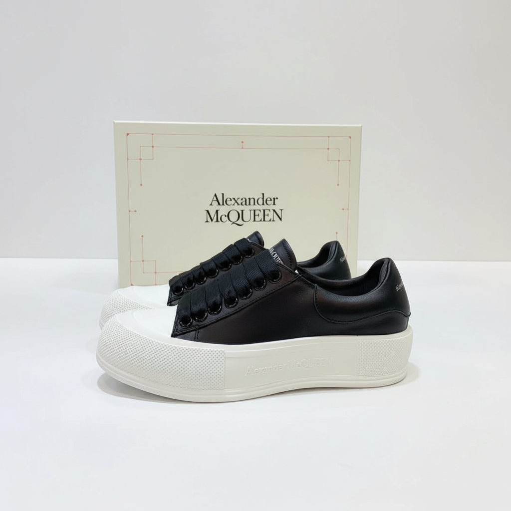Alexander McQueen Black Leather Platform Sneakers