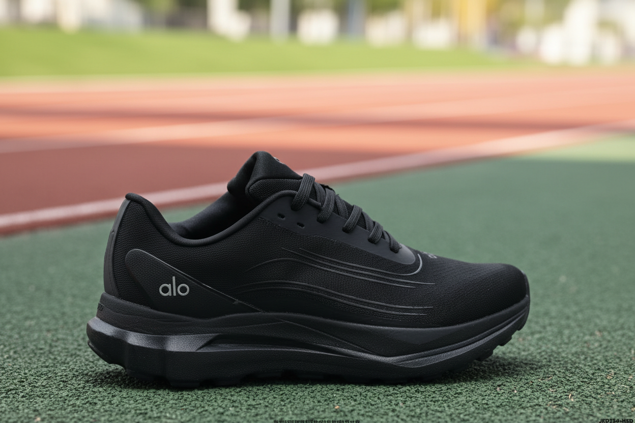 Alo Yoga black running shoes feature lightweight breathable mesh, cushioned sole for all-day comfort, sleek design for yoga, gym, or casual wear, perfect balance of style and performance.