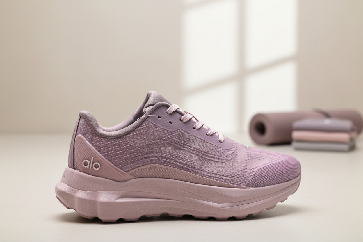 Alo Yoga Women’s Pink Mesh Sneakers, lightweight breathable running shoes with cushioned sole for comfort and style, perfect for gym, yoga, and casual wear.