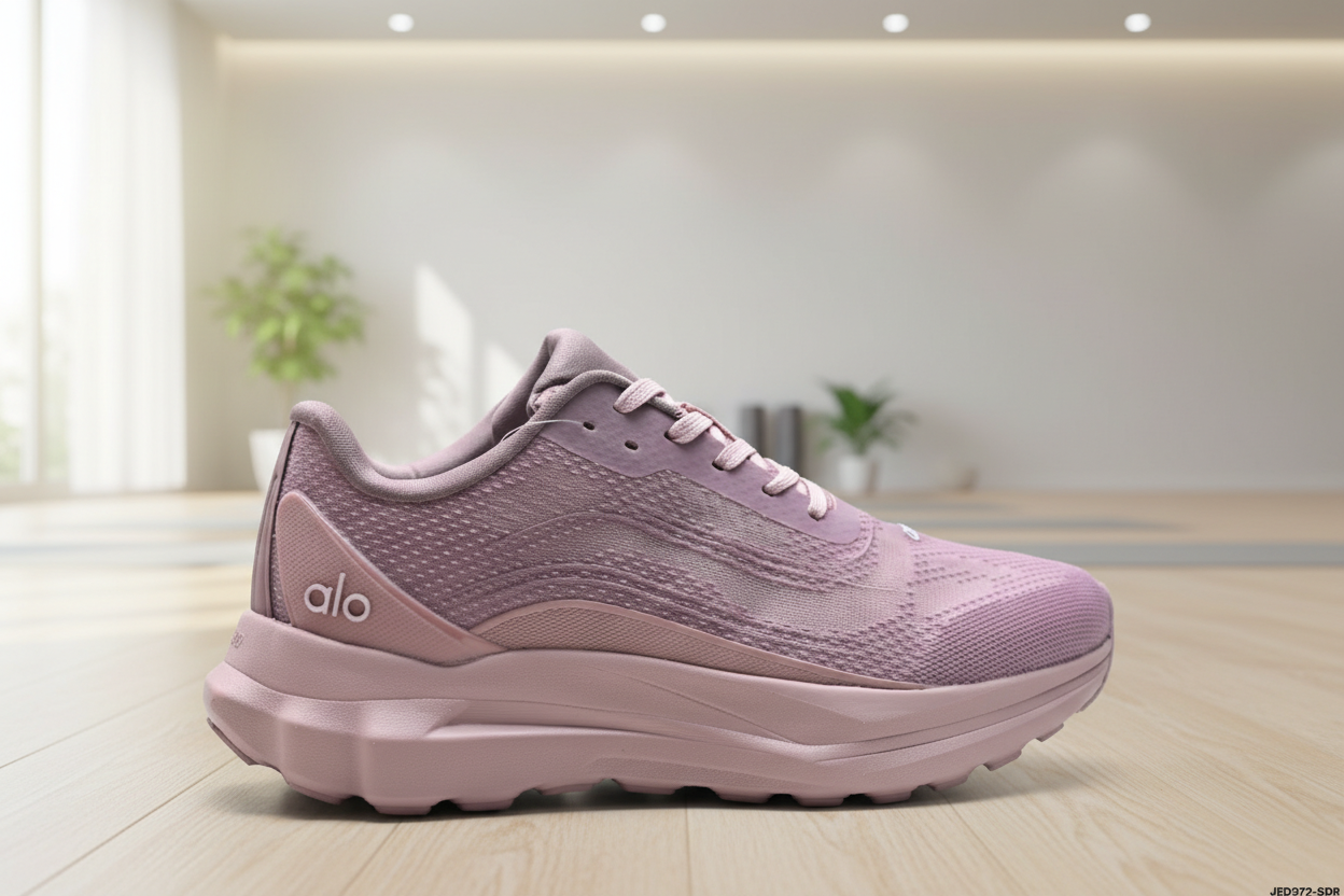 Alo Yoga Women’s Pink Mesh Running Shoes, lightweight breathable sneakers with cushioned sole for comfort, perfect for gym, walking, and casual wear.