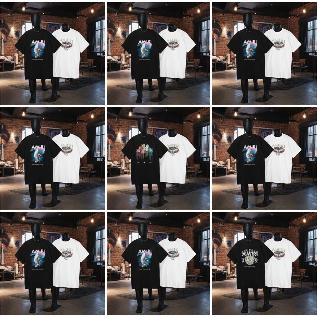 Amiri T-Shirt collection featuring premium cotton, vibrant graphic prints, and modern streetwear style, perfect for casual wear and fashion-forward looks.