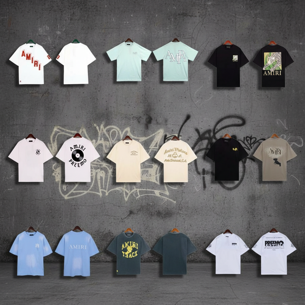 Amiri T-Shirts collection featuring trendy prints and premium cotton, perfect for casual wear and street style fashion enthusiasts worldwide.