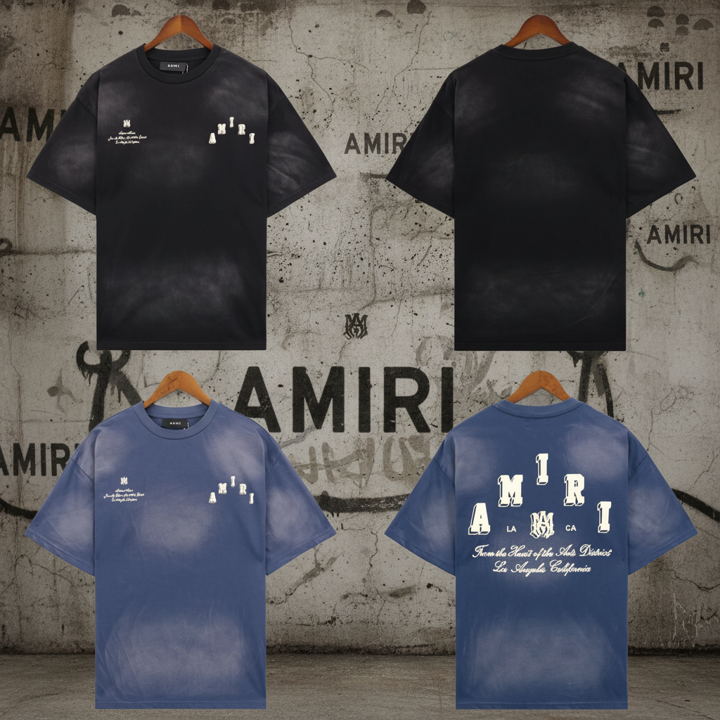 Amiri Men’s Tie-Dye Graphic Print T-Shirt, Casual Short Sleeve Streetwear Top, Soft Cotton Tee for Summer Fashion