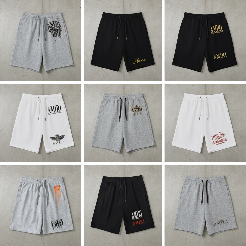 Amiri Men’s Casual Printed Drawstring Shorts, Summer Breathable Loose Fit Sportswear, Fashion Street Style for Daily Wear and Outdoor Activities.