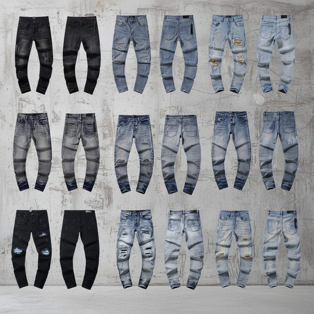 Amiri Men’s Slim Fit Distressed Jeans, Stylish Ripped Denim Pants for Casual Streetwear Fashion
