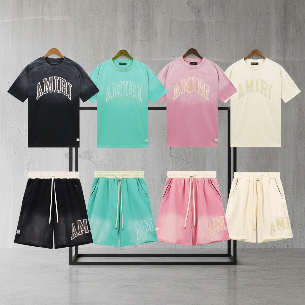 Amiri stylish casual T-shirt and shorts set, premium cotton, trendy colors, perfect for summer streetwear and daily wear.
