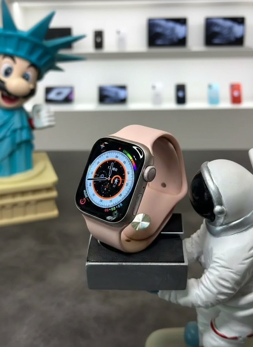 Apple Smart Watch with sleek pink band, advanced fitness tracking, heart rate monitor, GPS, and vibrant Retina display for style and performance.