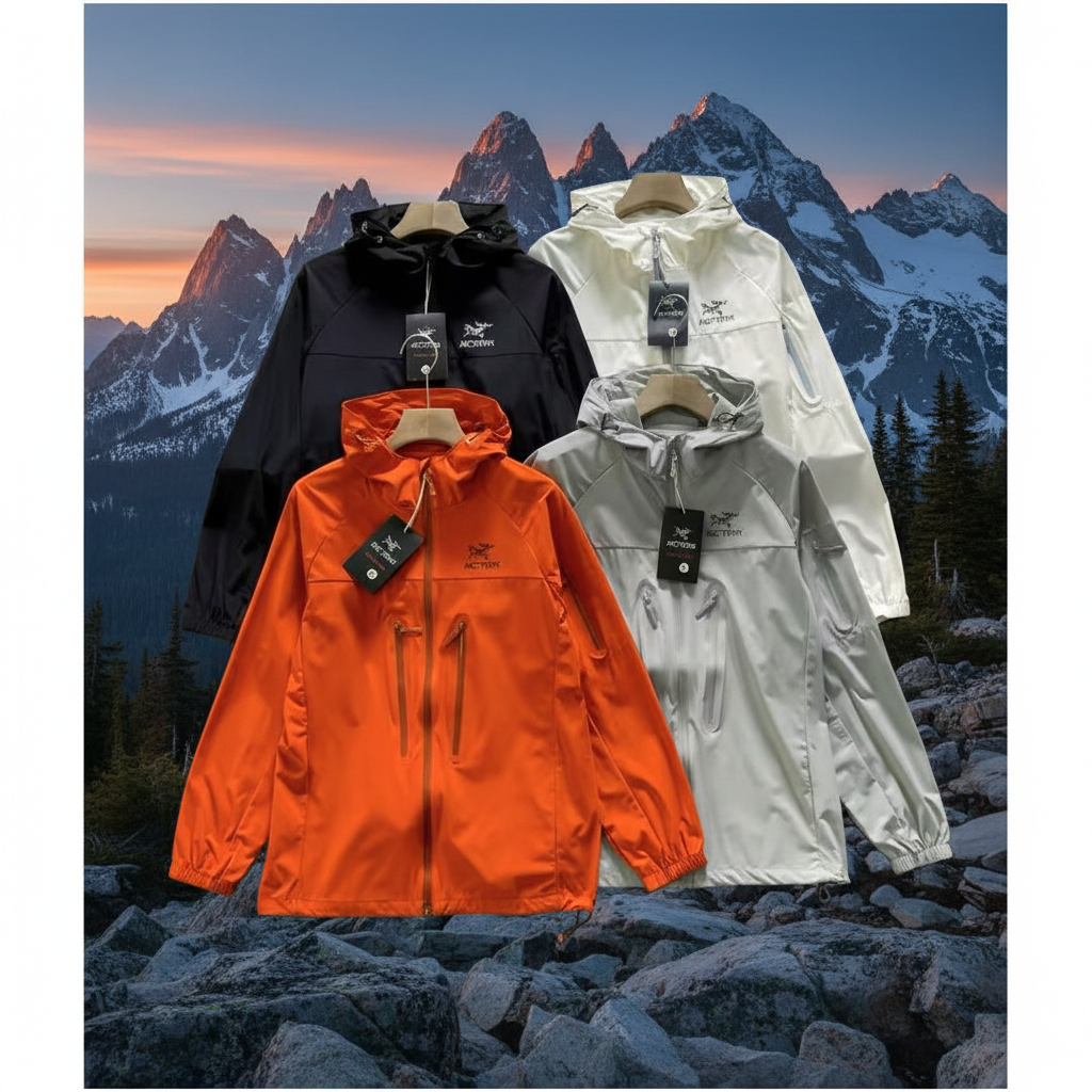 Arc’teryx breathable sweat-absorbing jacket, smooth luster finish, comfortable skin-friendly design, perfect for outdoor sports and casual wear in all seasons.