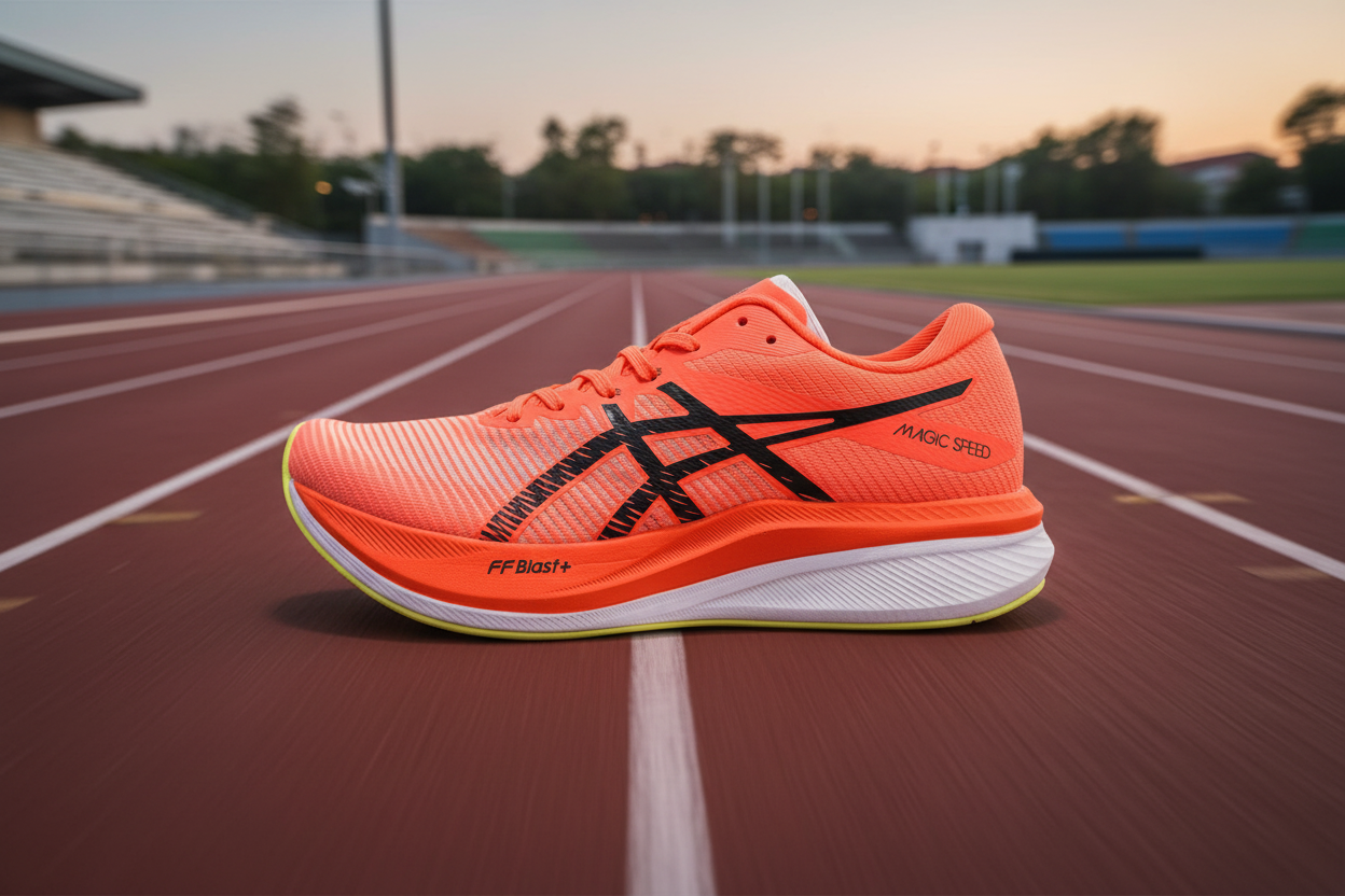 ASICS MAGIC SPEED 3 running shoes, FF Blast+ cushioning, breathable design, vibrant orange, sizes 36-45, ideal for marathon, training, and road runs.