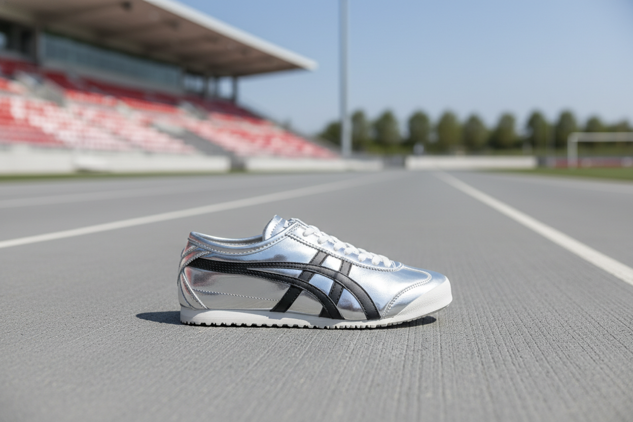 Asics Men’s Silver Metallic Sneakers with Black Stripes, Lightweight Casual Sports Shoes for Running, Walking, and Everyday Wear