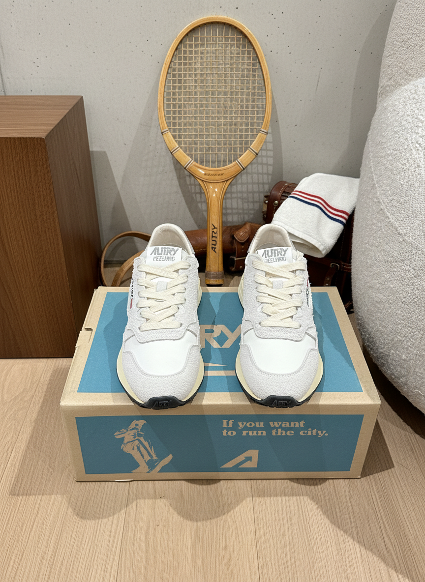 Autry sneakers for men, classic white and grey leather design, retro style with cushioned sole for all-day comfort, perfect for casual wear and urban fashion.