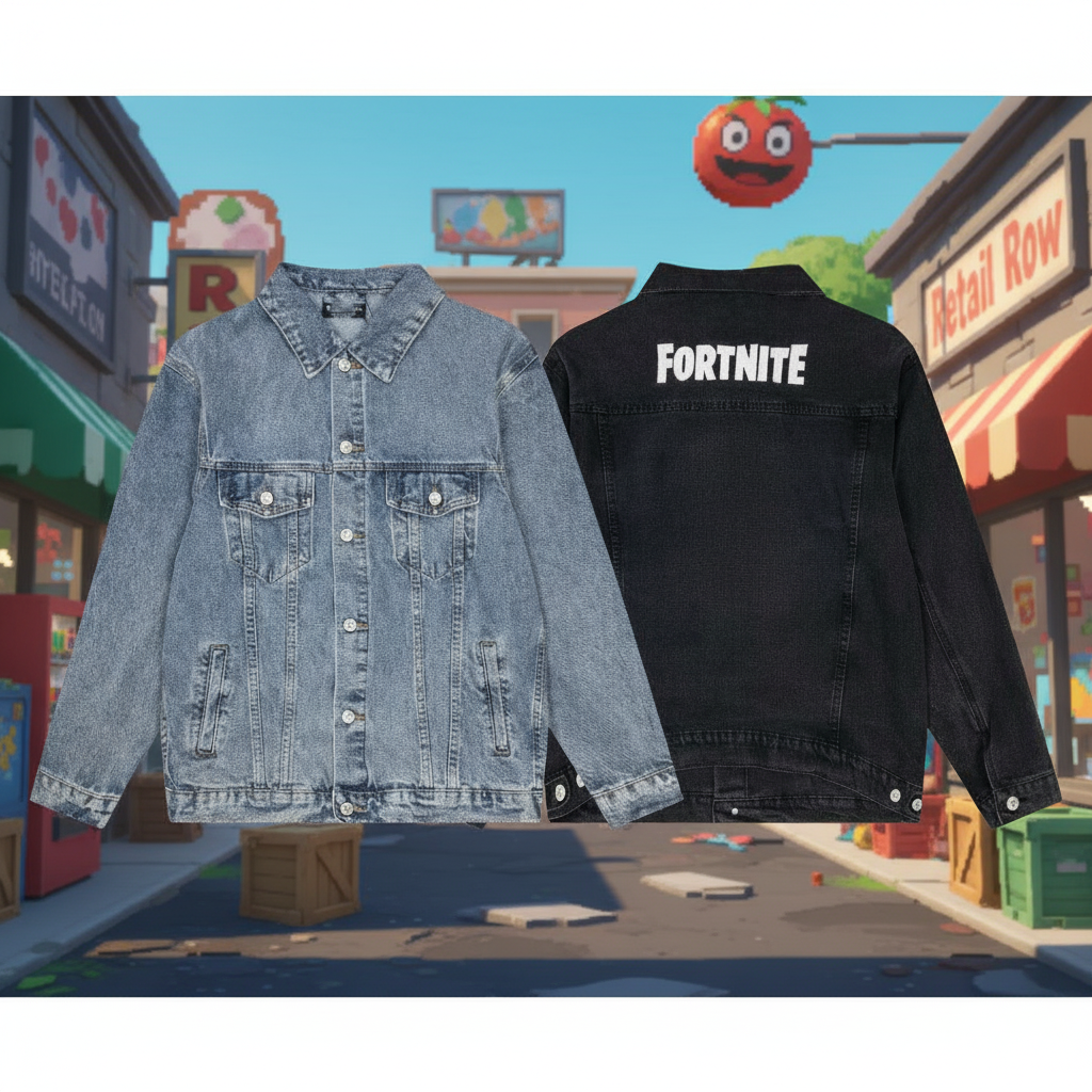 Balenciaga Fortnite Denim Jackets, stylish blue and black designs, premium quality, streetwear fashion, perfect for casual wear and gaming fans.