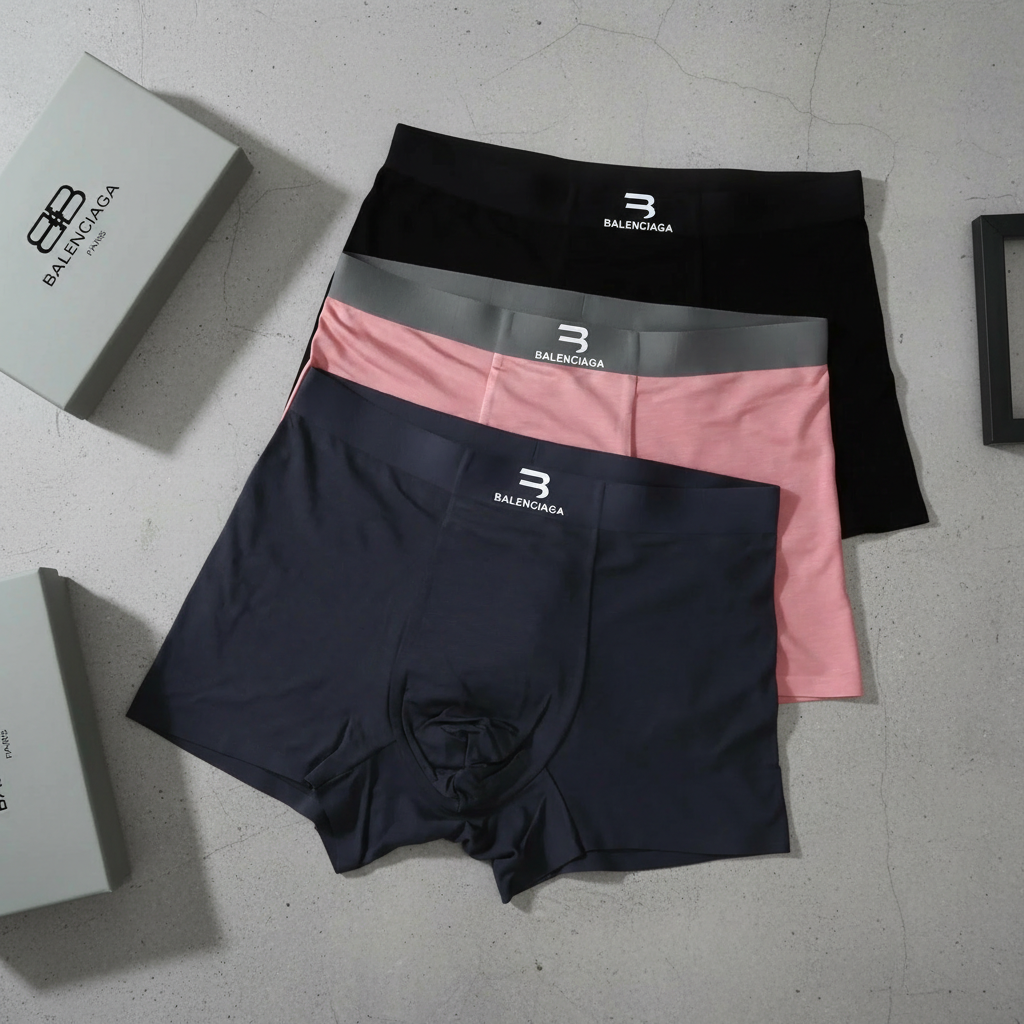 Balenciaga men’s boxer briefs 3-pack, premium soft fabric, stylish colors, comfortable fit, perfect for everyday wear and fashion-forward style.