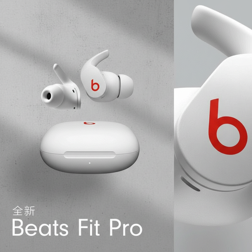 Beats Fit Pro wireless earbuds with secure-fit wing tips, active noise cancelling, rich sound quality, and sleek design for ultimate comfort and performance.
