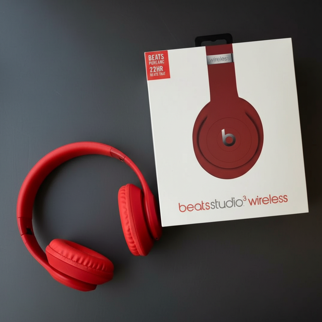 Beats Studio3 Wireless headphones deliver premium sound, 22-hour battery life, and noise-canceling in a stylish red design, perfect for music lovers and travel.