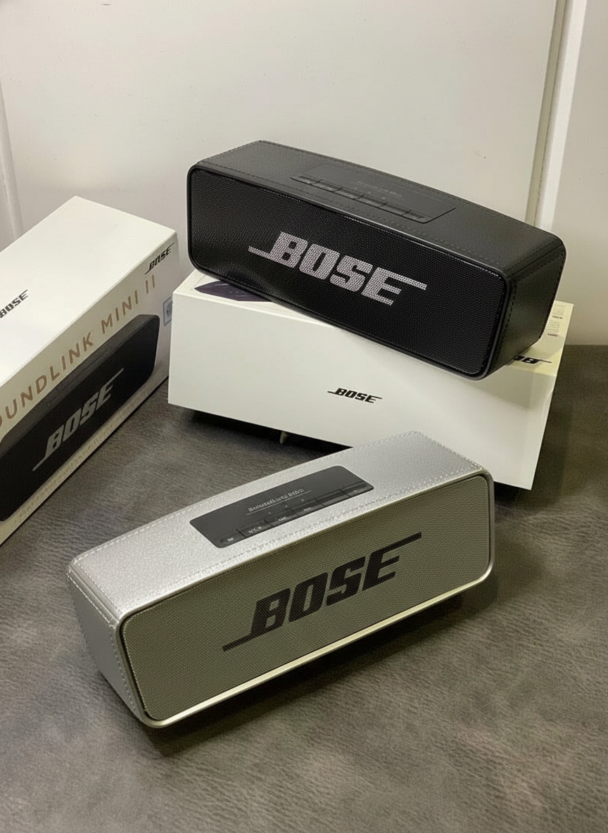 Bose SoundLink Mini II Bluetooth Speaker, portable wireless design with deep bass and clear sound, ideal for home, outdoor, and travel music enjoyment.