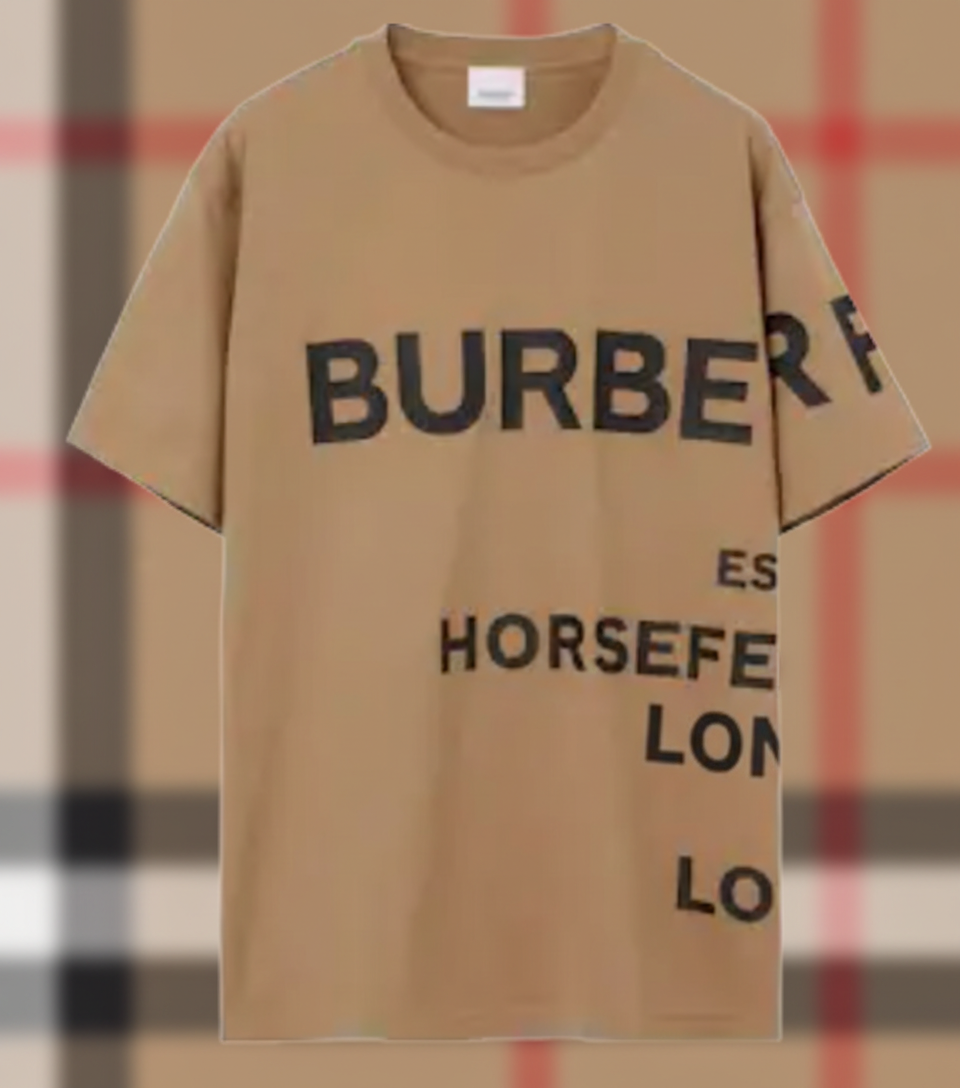 Burberry Men’s Casual T-Shirt, Classic Beige with Oversized Logo Print, Short Sleeve, Premium Cotton, Fashion Streetwear Top for Everyday Wear