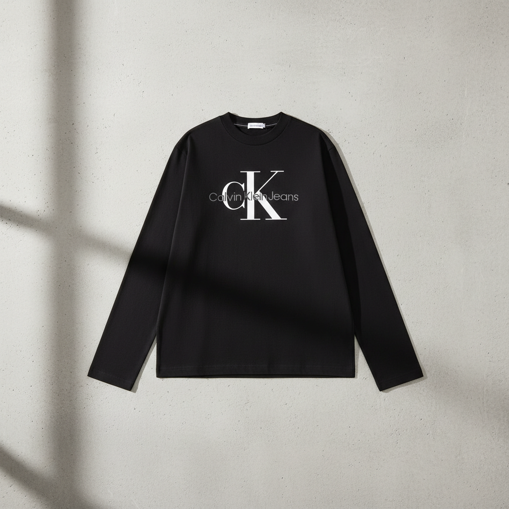 Calvin Klein Jeans black long sleeve T-shirt with iconic CK logo, premium cotton, casual stylish design perfect for everyday wear and layering.