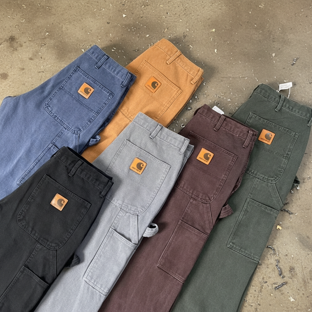 Carhartt durable work pants for men, multi-pocket design, classic rugged style, available in multiple colors, perfect for outdoor, construction, and casual wear.